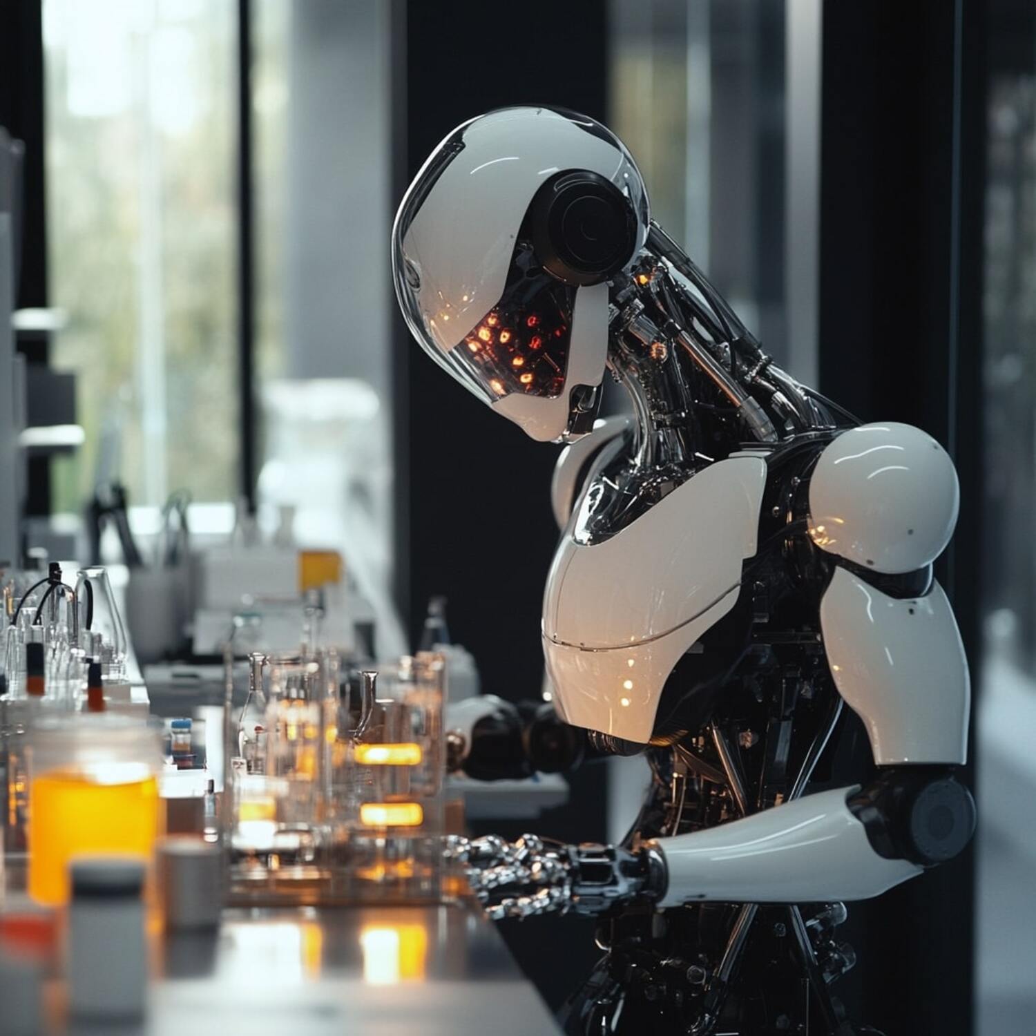 Le robot au labo • Qant, M. de R. avec Midjourney