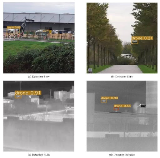 Efficacité du système IA de détection des drones (en rouge, un faux positif) • Purbaditya Bhattacharya et al.