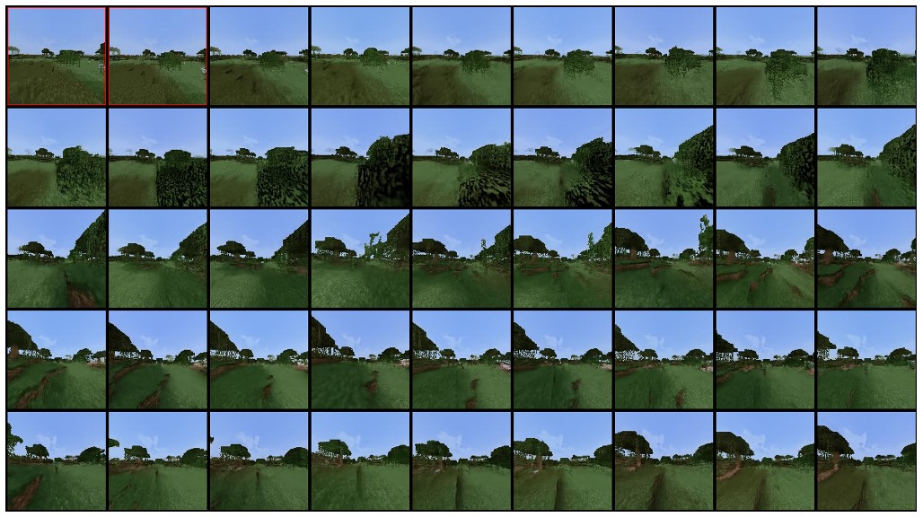 La capacité du Diffusion Forcing à maintenir des séquences stables sur une durée prolongée dans l'environnement Minecraft • Source : Boyuan Chen et al.