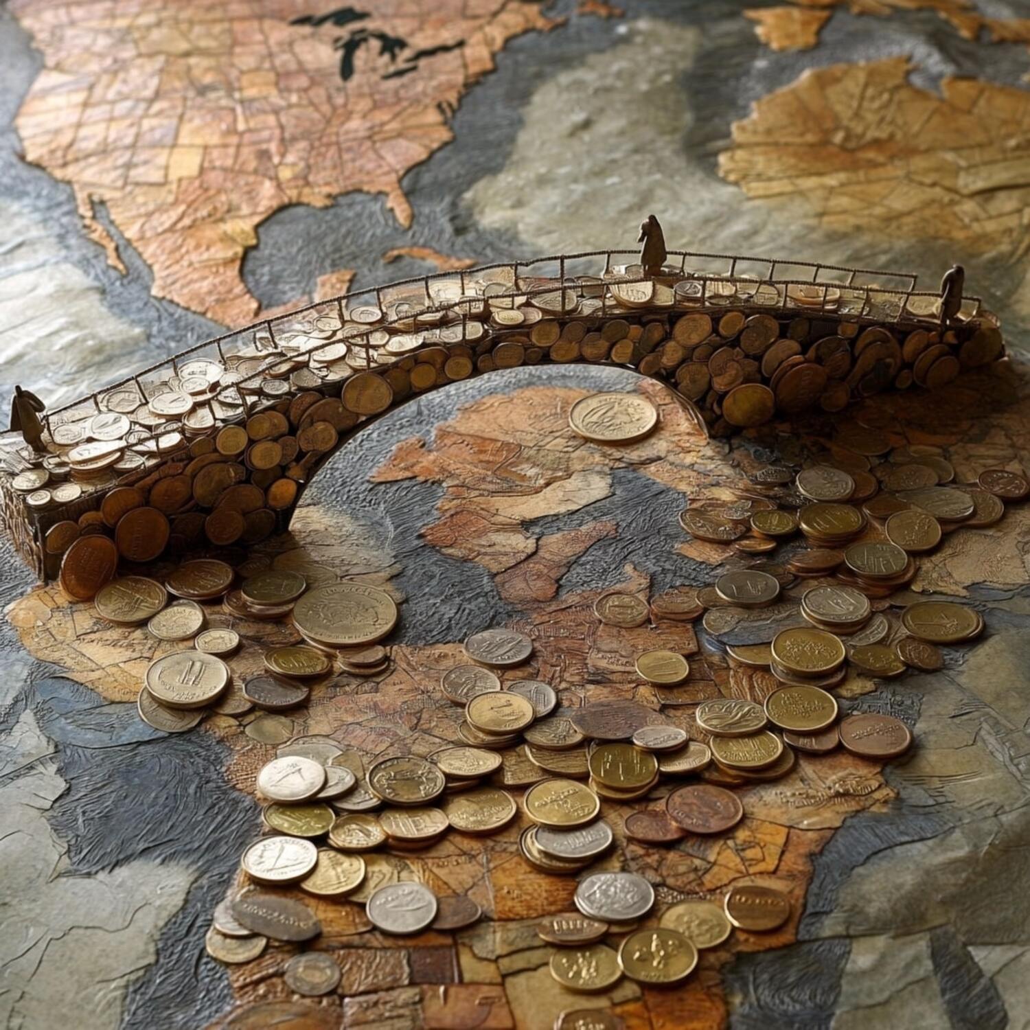 Un pont fait de stablecoin • Qant, M. de R. avec Midjourney