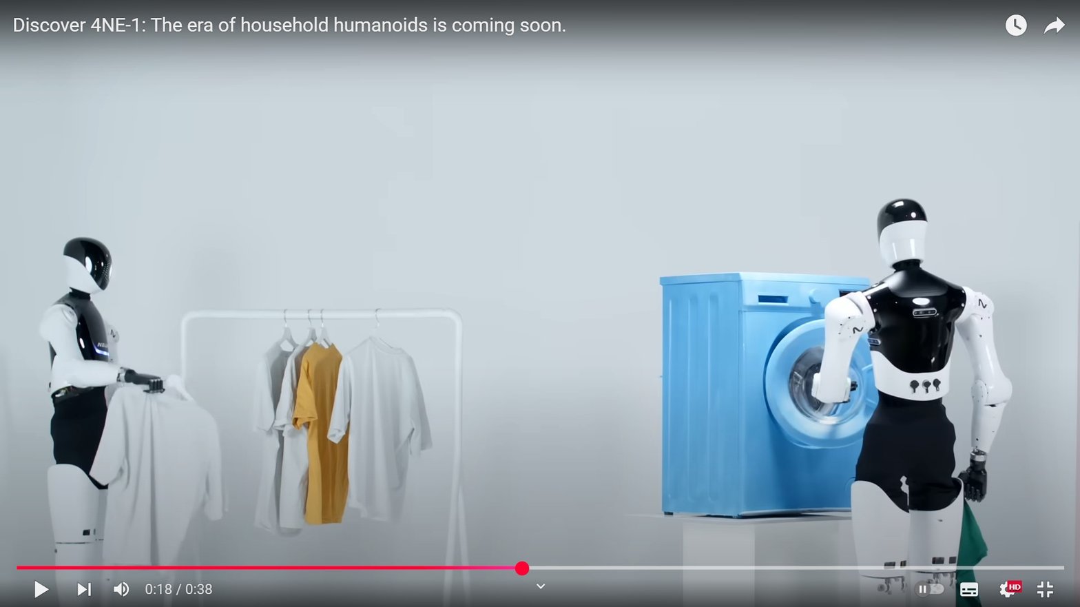 On y voit notamment le robot 4NE1 décharger un lave-linge et servir un cocktail, ce qui évoque le marché émergent de la robotique humanoïde : les services à la personne plutôt que l’industrie.