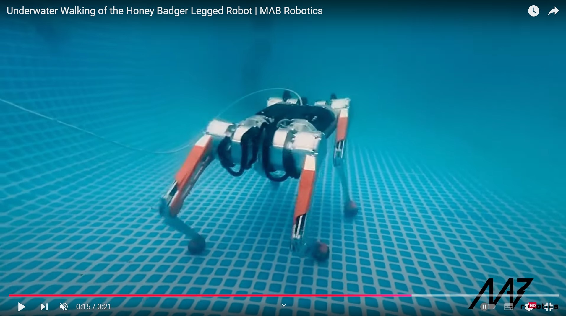 L'entreprise polonaise MAB Robotics vient de publier des images de son robot quadrupède, le Honey Badger (“blaireau à miel"), évoluant aussi bien sur terre que sous l'eau. Cette nouvelle version amphibie, d’un robot conçu dès l'origine pour opérer dans des environnements difficiles, élargit considérablement son champ d'application, des missions de recherche, de sauvetage et d'inspection sous-marines, jusqu’aux environnements industriels et aux égouts.