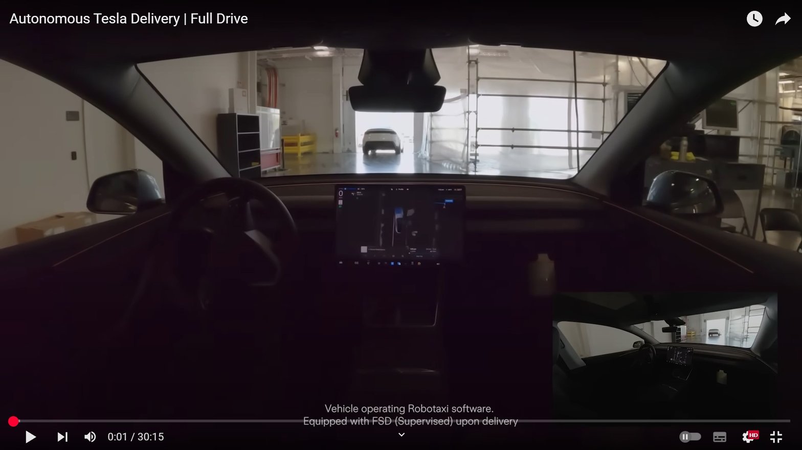 La vidéo publiée par Tesla sur X montre un trajet de 30 minutes, sans opérateur de sécurité ni conducteur de secours, du parking de l’usine jusqu’au trottoir du client.