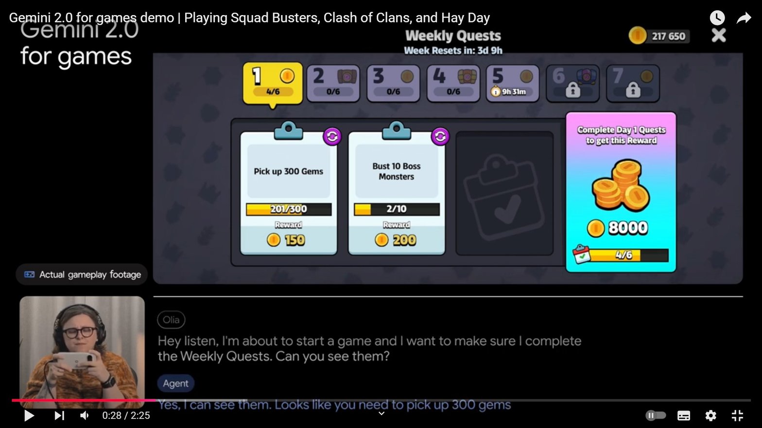 Avec l’éditeur de jeux vidéos Supercell, Google développe des agents pour conseiller les joueurs. Ces agents se basent exclusivement sur l’écran du joueur, ses instructions orales et la recherche sur Internet.