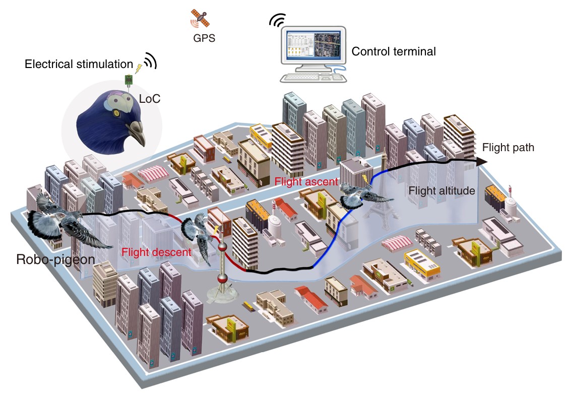 Des scientifiques des universités de Nanjing et de Pékin ont démontré qu’il est possible de contrôler dynamiquement l’altitude de vol de pigeons vivants, équipés d’implants cérébraux, en stimulant électriquement le locus coeruleus, une petite structure du tronc cérébral connue pour son rôle dans la régulation de la motricité. Le dispositif, embarqué sur le dos de l’animal, permet une modulation ascendante ou descendante de la trajectoire, sans affecter sa direction ni sa capacité de navigation autonome.