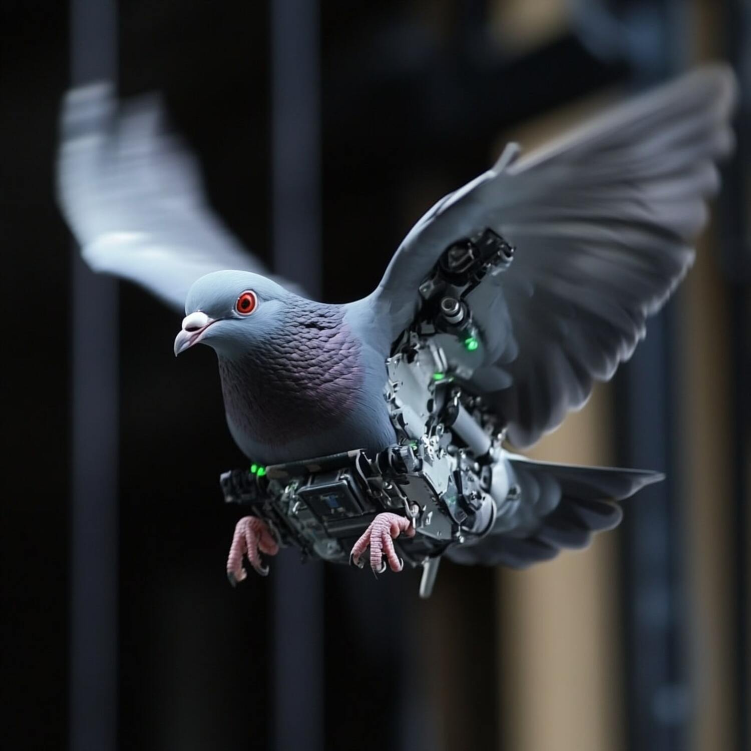 Un pigeon contrôlé à distance • Qant, M. de R. avec Midjourney