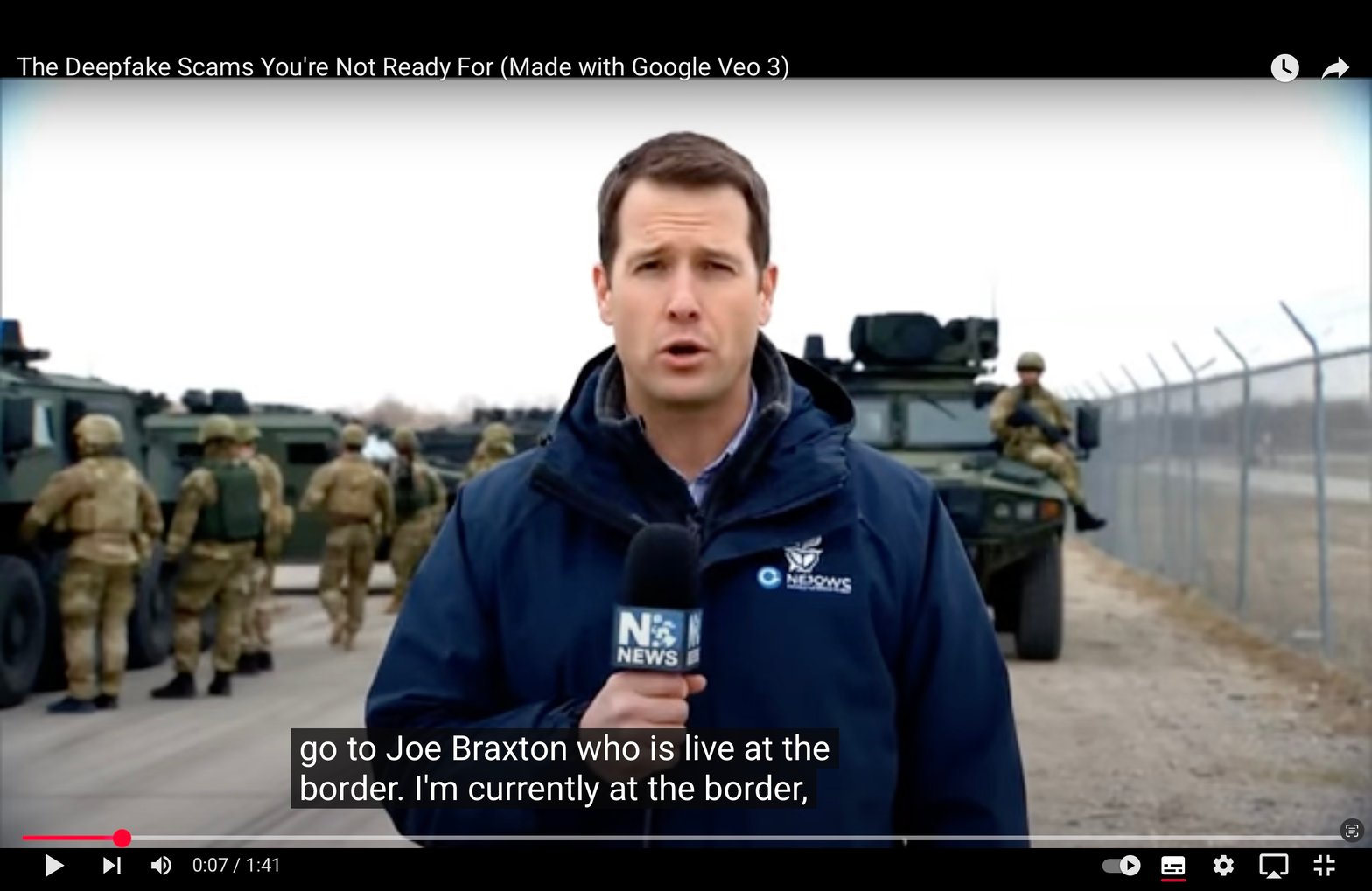 Dès la sortie de Veo 3, le cinéaste américain Travis Bible a créé avec le modèle une courte vidéo de mise en garde, vue plus de 25 millions de fois sur diverses plates-formes, qui commence précisément par une séquence d’information sur un événement spectaculaire : le Canada qui déclare la guerre aux États-Unis de Donald Trump.
