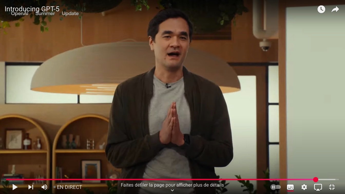 « Ideal pair programmer » : dans l’immédiat, GPT-5 est présenté comme la paire idéale pour chaque codeur – une méthode de programmation qui revient à la mode grâce à l’IA, où un programmeur (aujourd’hui l’IA) écrit le code et l’autre commente, corrige et vérifie. Comme Claude d'Anthropic, GPT-5 dispose en outre d’un agent capable de travailler sur de longues durées et d’appeler plusieurs outils pour exécuter la tâche que lui confie l’utilisateur. Le grand public – et les journalistes – ont été appelés à faire coder un petit programme ludo-éducatif (non pas un serpent, mais une souris) mais l’interface semble aussi prête à générer des graphiques interactifs de visualisation de données, avec une utilisation de Python minimisée par l’utilisateur. Pour faire bon poids, OpenAI a tenté de faire oublier l’échec des négociations avec Windsurf en faisant monter sur scène Michael Truell, fondateur de l’environnement de développement rival, Cursor.