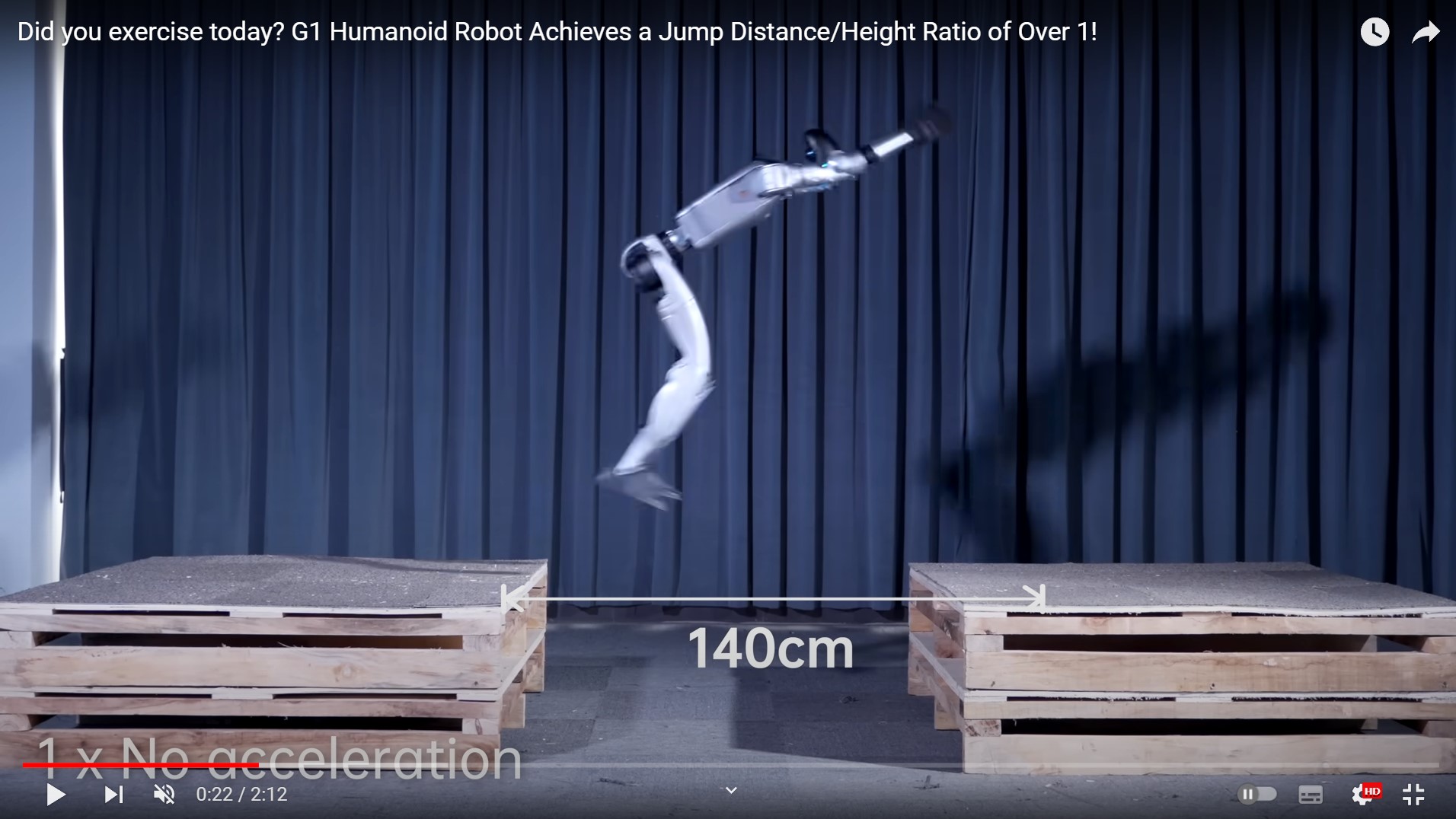 Après la course, le yoga (lire Qant du 26 septembre 2023) et le parkour (lire Qant du 18 mars), le saut. En atteignant une distance de 1,4 mètre, le robot humanoïde G1 a établi un nouveau record robotique de saut en longueur sans élan, du moins selon son constructeur, le chinois Unitree. Même si les applications possibles se limitent aux secteurs domestique et industriel, le sport est devenu le média de prédilection pour une industrie naissante, tout entière tournée vers la vidéo et la communication.